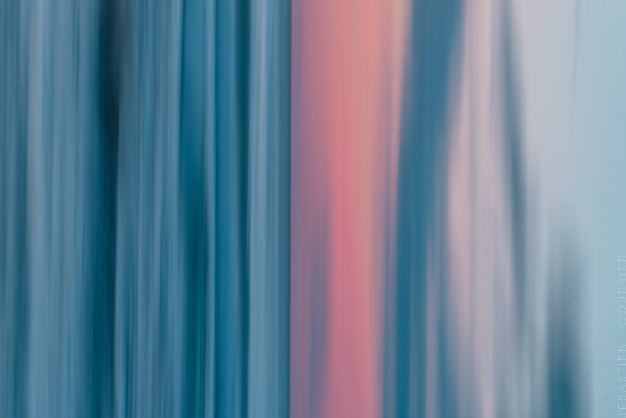 Gris profonds des granites Bretons, aurores pourpres de l’archipel des Bacuit, bleus éclatants des lacs du Haut-Atlas, constituent la palette d’un photographe à l’âme de peintre. Par la méditation il cherche à percevoir la nature vibratoire des lieux. Il s’imprègne ainsi de l’émotion qu’il exprimera ensuite par le geste. Il entame alors une danse où l’appareil photographique devient le pinceau étirant les couleurs, déconstruisant les paysages par le mouvement pour en révéler l’esprit. Le résultat, entre photo et peinture, est saisissant. Échappant à toute construction intellectuelle, l’œuvre de Sébastien Courbier est un lien émotionnel entre l’âme du spectateur et l’essence divine du monde.